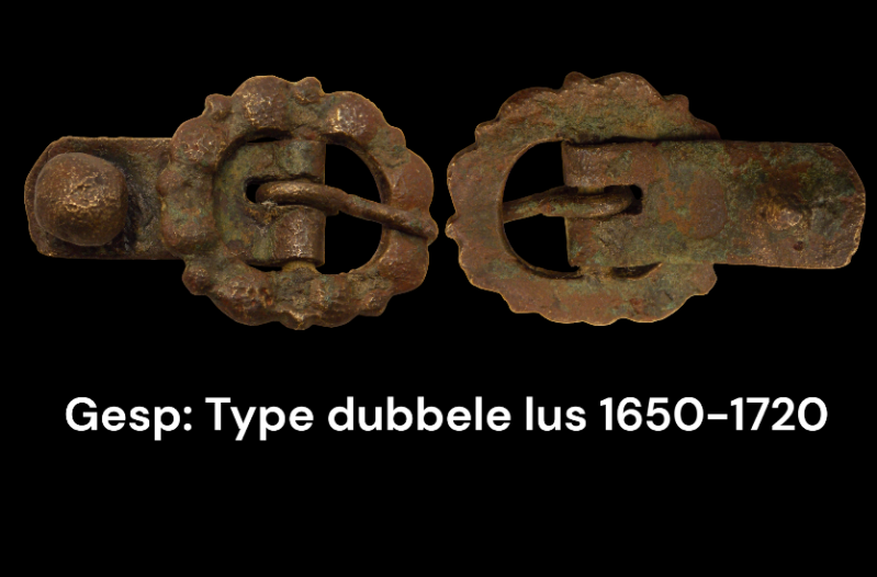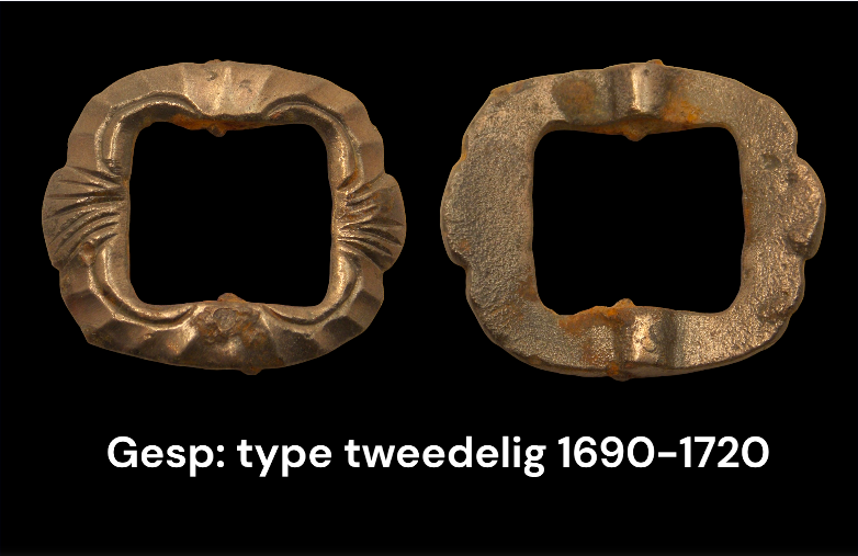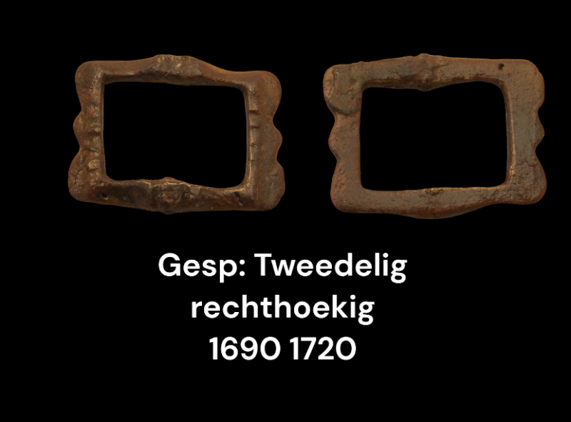 Gesp : type tweedelig ovaalvormig, met ankervormige bevestiging 1660 - 1720